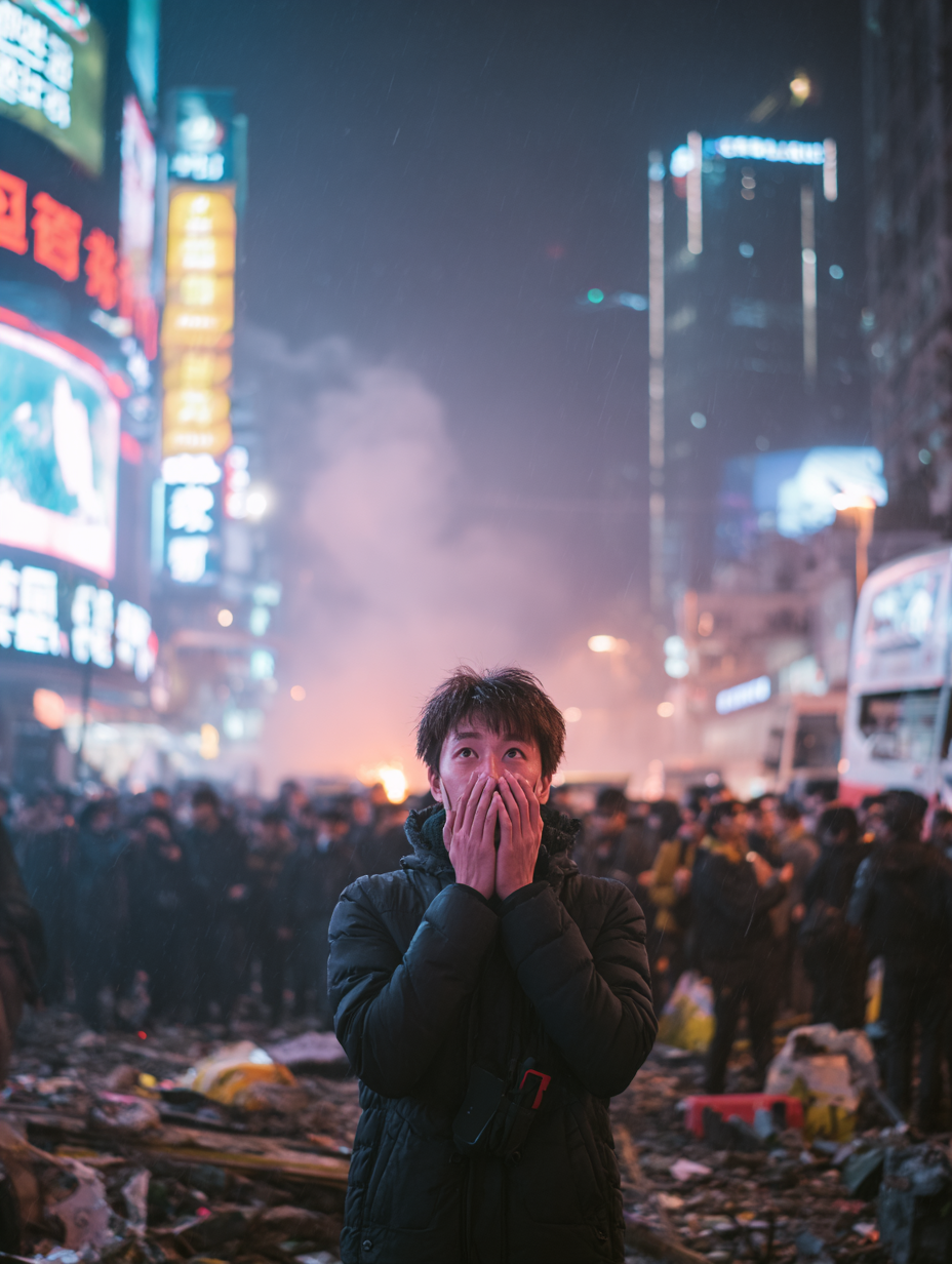 I ran past a vendor’s stall overturned in the chaos. The woman who had sold dumplings there yesterday now screamed at her reflection in a phone screen. A group of teenagers huddled together, crying, holding one another as if the world had ended overnight. Maybe it had.